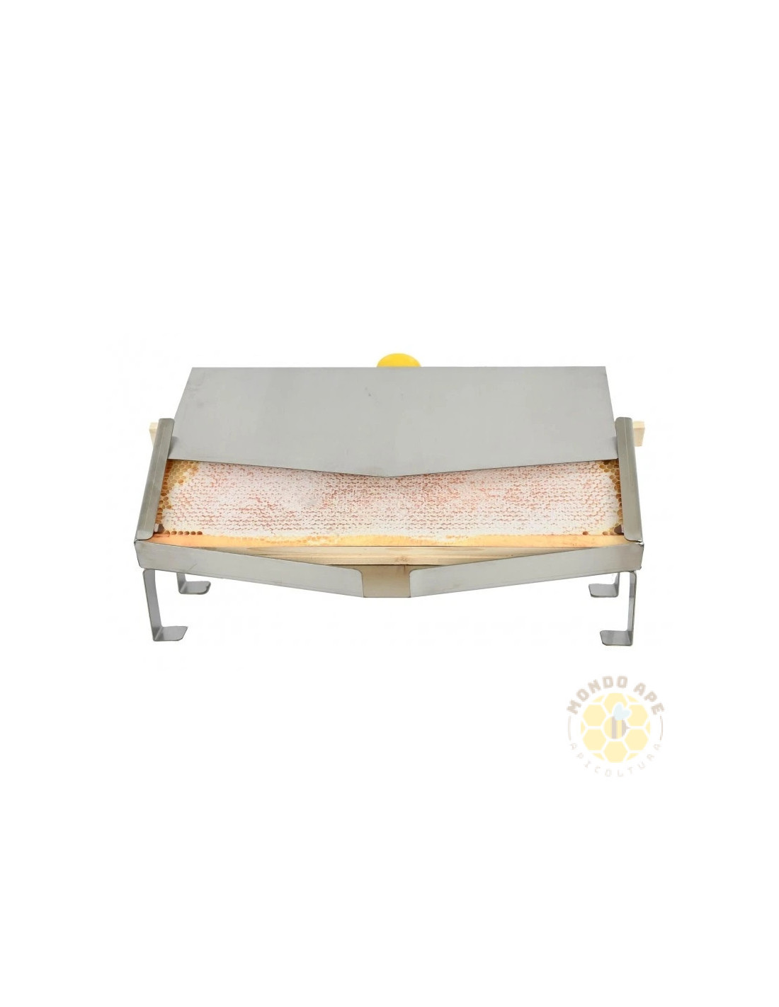 Dotato di piano di appoggio del favo inclinato, studiato per facilitare lo scolo naturale del miele tramite apposita apertura di drenaggio (contenitore per la raccolta del miele non incluso).