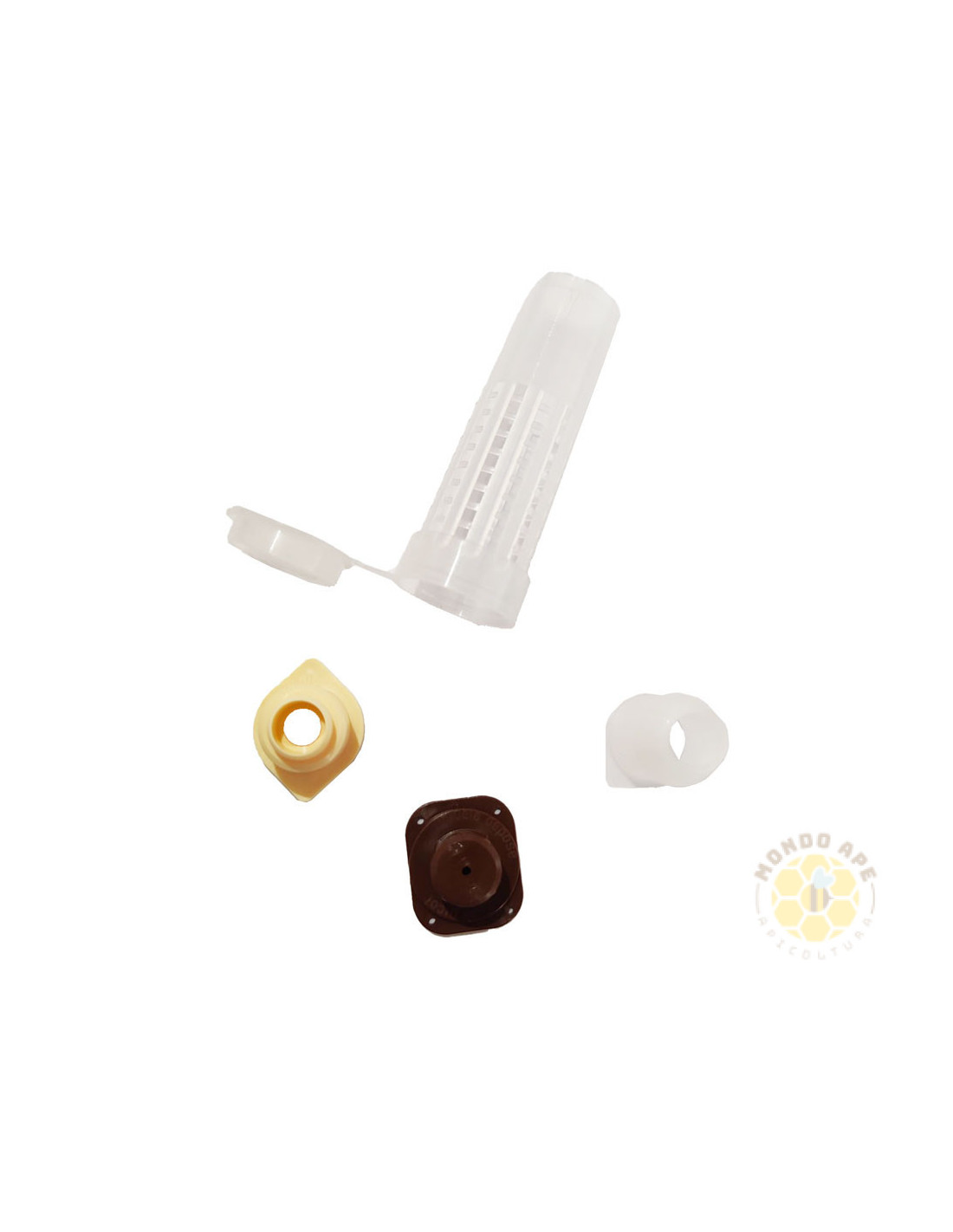 Il supporto per gioco delle regine e il blocco porta cupolini consentono una disposizione stabile e corretta dei cupolini, mentre la gabbietta per regina tipo bigodino con tappo permette di isolare e proteggere la regina, garantendo al tempo stesso una corretta ventilazione e, se necessario, una nutrizione controllata.