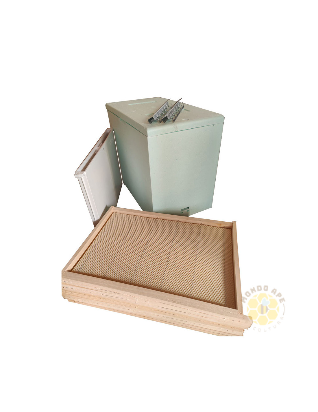 Sono inclusi 5 telaini da nido completi di foglio cereo, pronti per favorire una rapida costruzione dei favi, e 2 distanziatori in lamiera per il corretto posizionamento dei telaini all'interno del corpo arnia.
