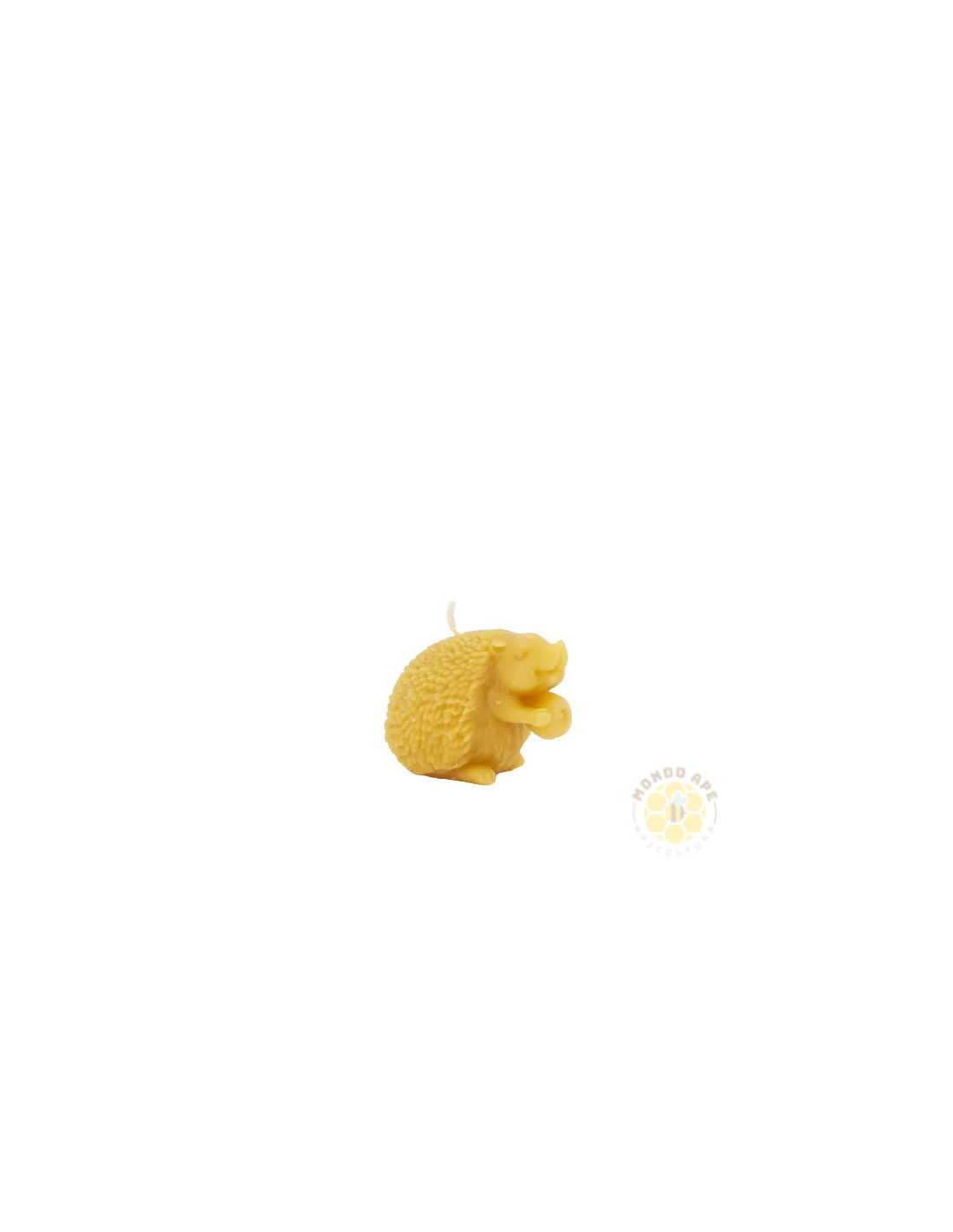 Candela in cera d'api a forma di riccio con mela.