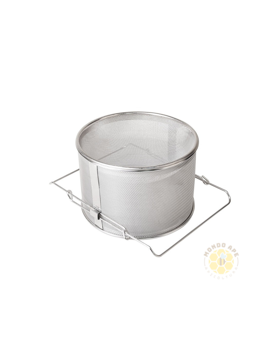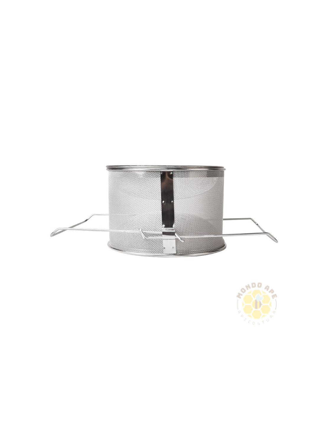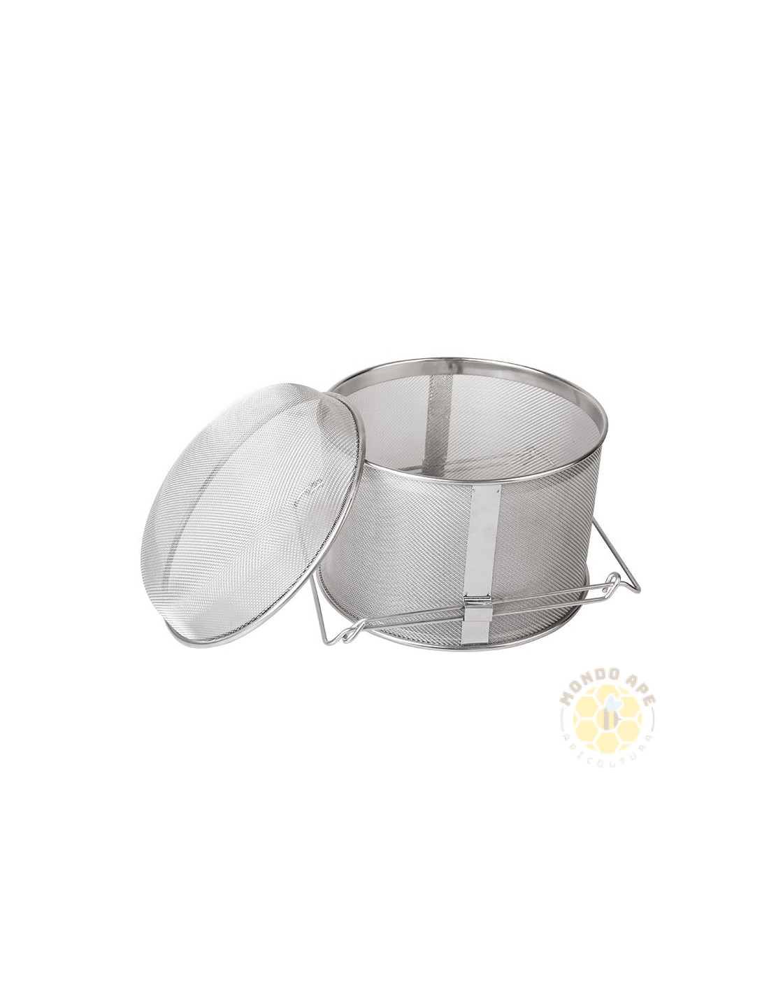 Il doppio filtro per miele in acciaio inox Ø 24 cm è progettato per le operazioni di filtrazione meccanica del miele su contenitori di dimensioni ridotte, quali secchi in plastica da 25 kg. La configurazione a doppio elemento filtrante consente una filtrazione progressiva del prodotto.