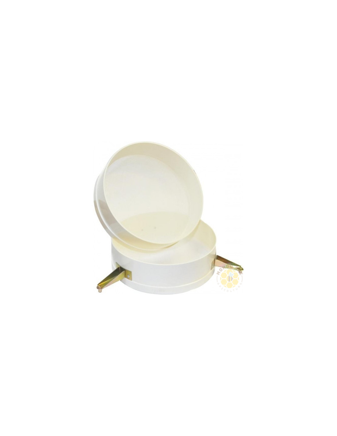 Filtro doppio in plastica progettato per la filtrazione del miele nelle fasi di travaso e lavorazione. Il sistema a doppio diametro Ø 30 cm consente una filtrazione più efficace, aiutando a trattenere le impurità grossolane come residui di cera e particelle solide.