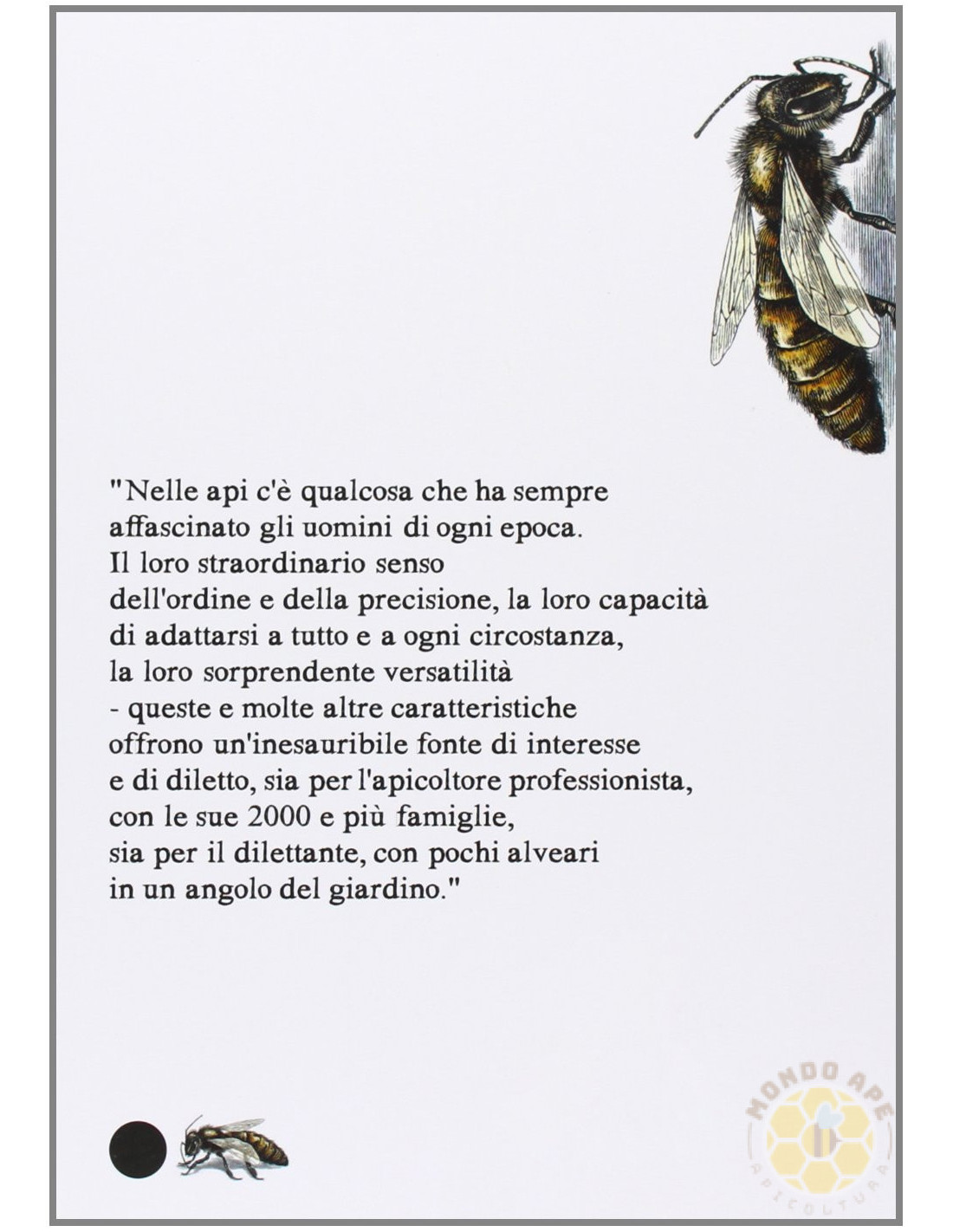 Non è un manuale tecnico, ma il resoconto generale dell'apicoltura sviluppata a Buckfast, dove ogni attrezzo, ogni operazione e ogni scelta gestionale sono stati studiati per ottenere massimi risultati con il minimo impiego di tempo, nel pieno rispetto degli istinti e dell'organizzazione naturale delle api.