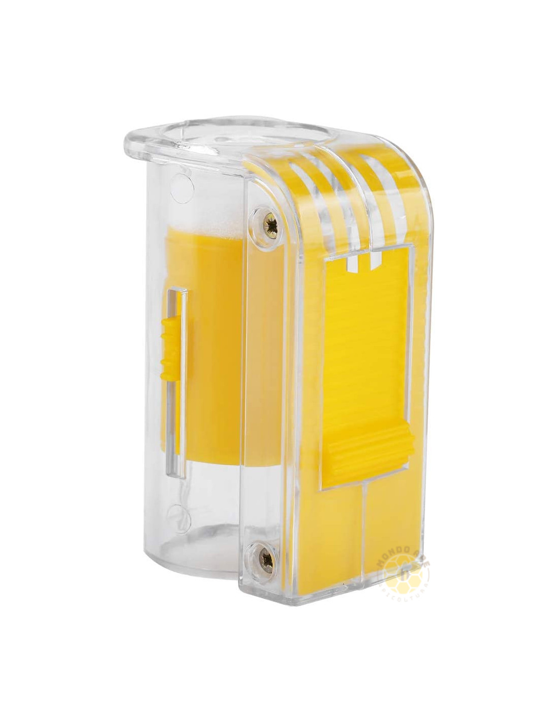 La griglia di apertura/chiusura in plastica morbida è progettata per permettere alle eventuali api operaie catturate di uscire, mentre l'ape regina rimane bloccata all'interno, facilitando l'operazione e riducendo lo stress per la colonia.