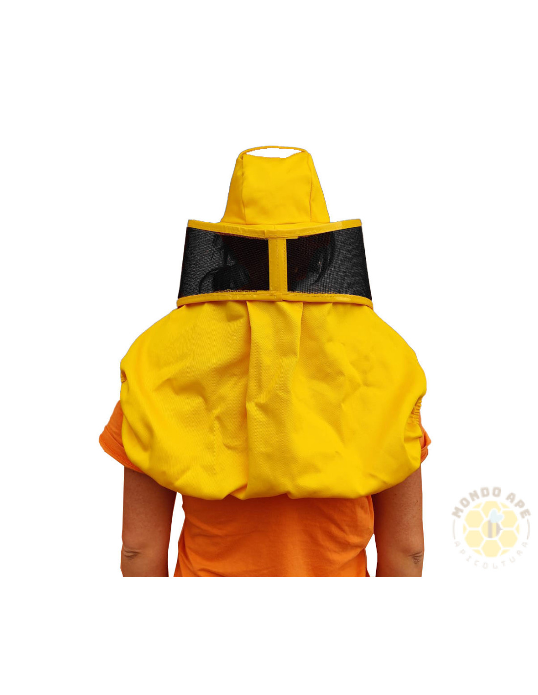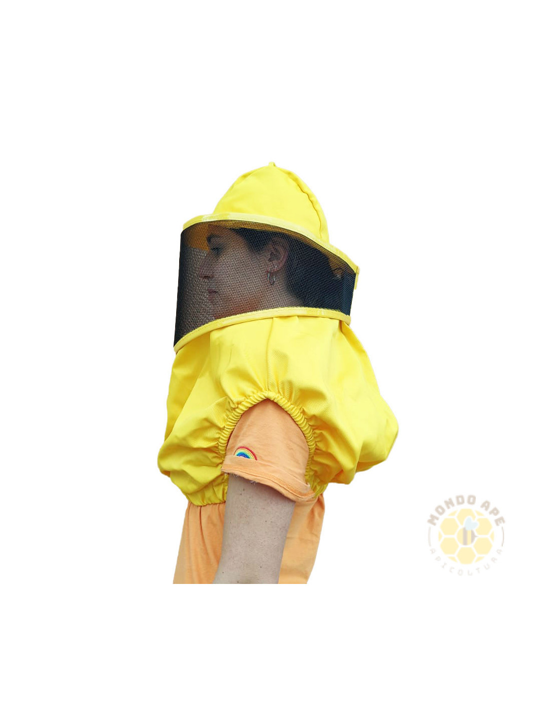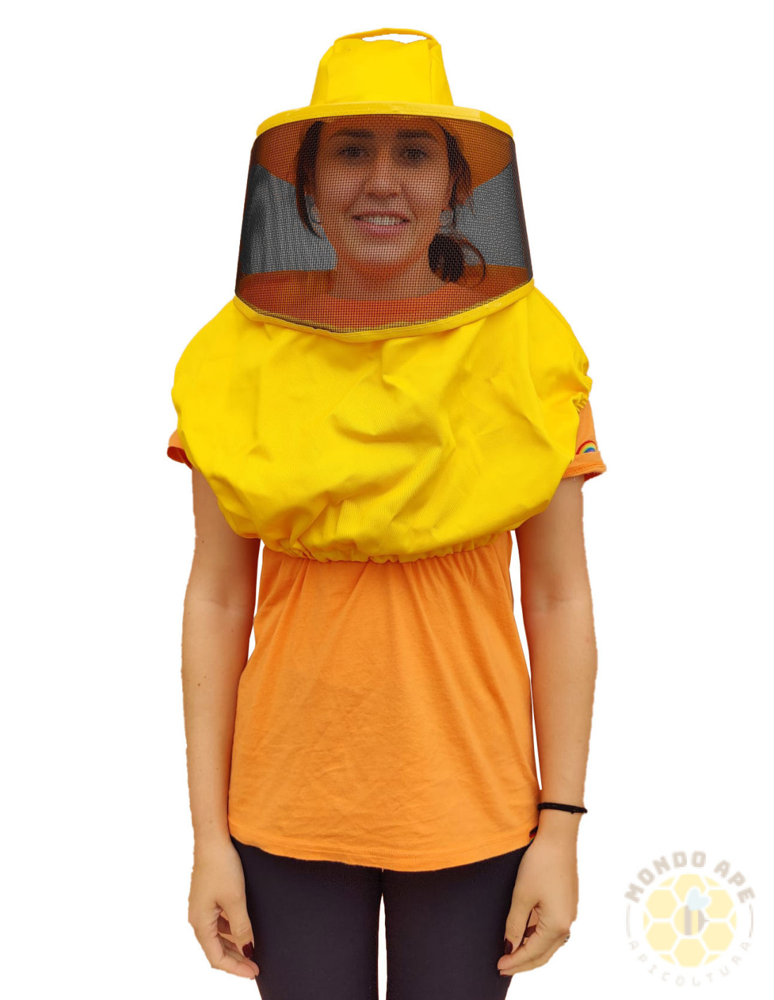 Maschera apistica a forma rotonda ascellare dotata di rete metallica che mantiene la struttura distanziata dal viso, garantendo protezione e visuale chiara durante le operazioni in apiario.