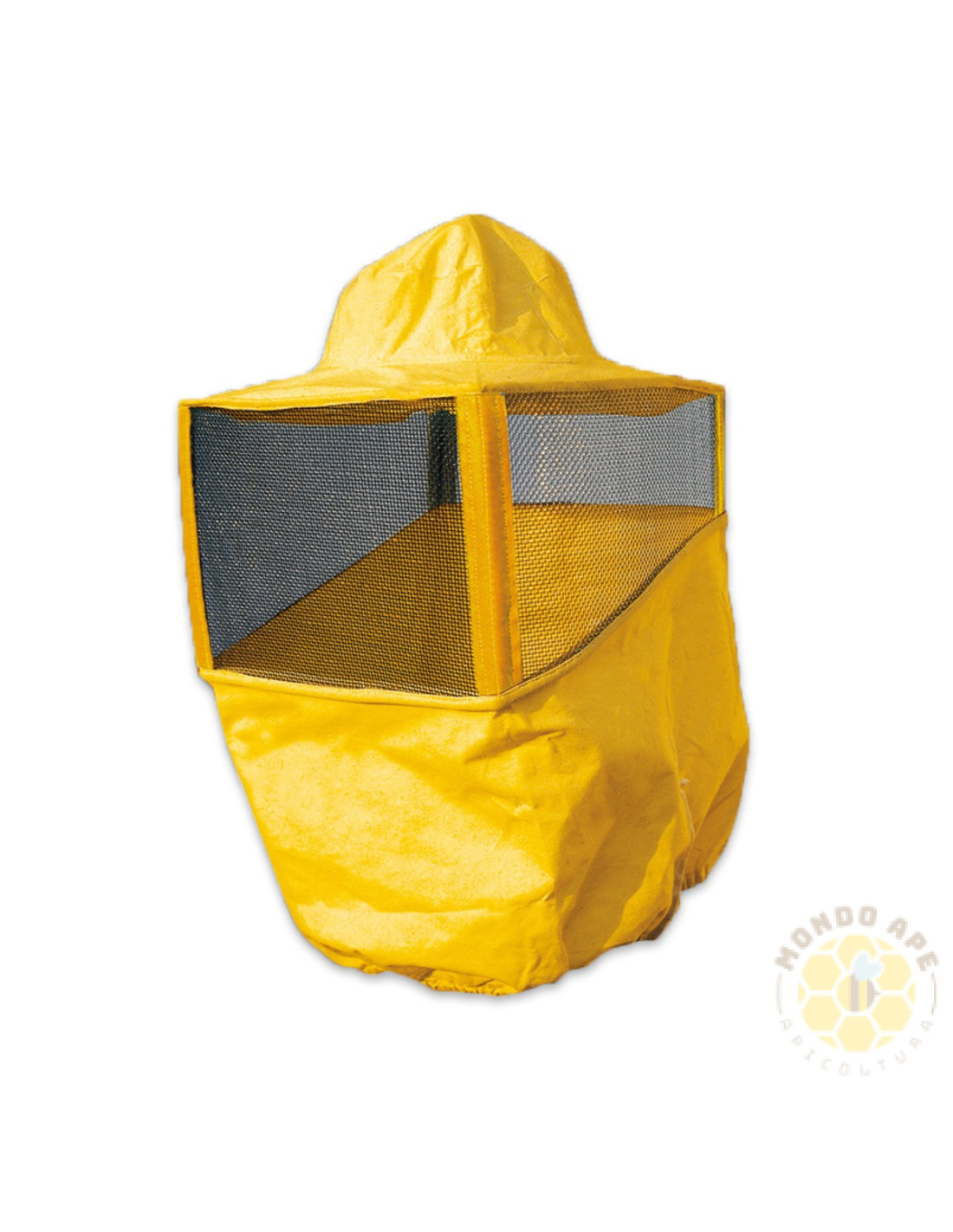 Maschera protettiva tradizionale a forma quadrata, progettata per garantire protezione di viso, testa e parte superiore del busto durante le operazioni in apiario.