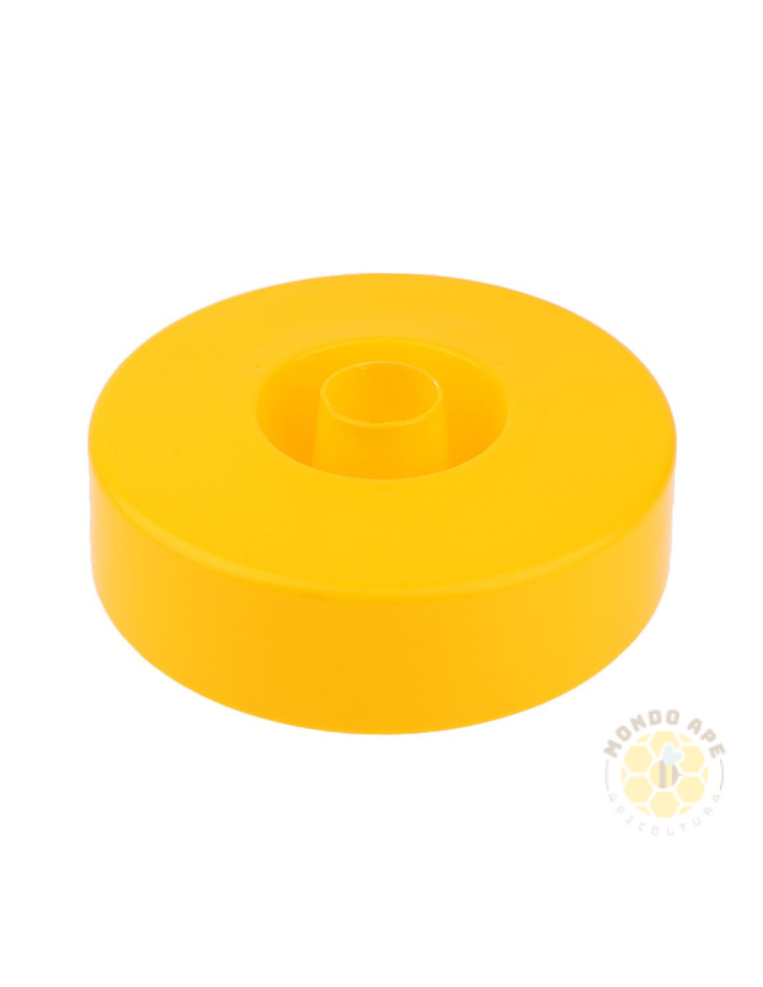 Realizzato in plastica morbida, è composto da bicchierino interno e coperchio, che consentono una distribuzione sicura dello sciroppo. Il nutritore va posizionato sul coprifavo, aprendo il disco a 4 posizioni per permettere l'accesso delle api al nutrimento.