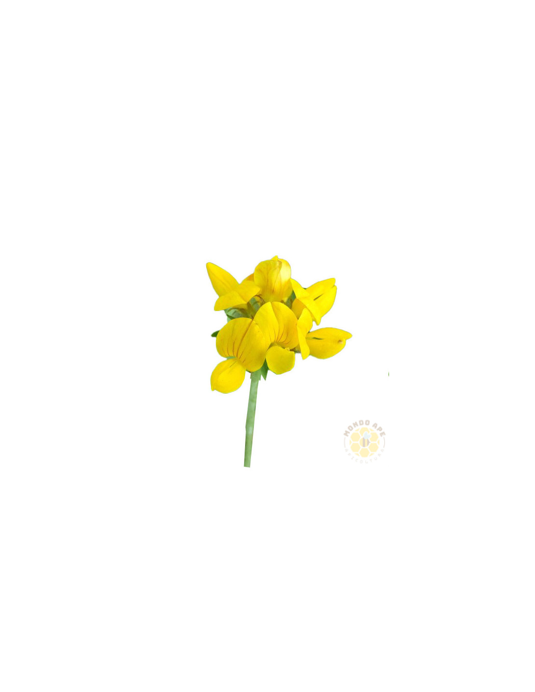 Fiori: piccoli, di colore giallo brillante, a volte tendenti all'arancio-rosso in fase avanzata. Hanno la tipica forma delle leguminose (vessillo, ali e carena).