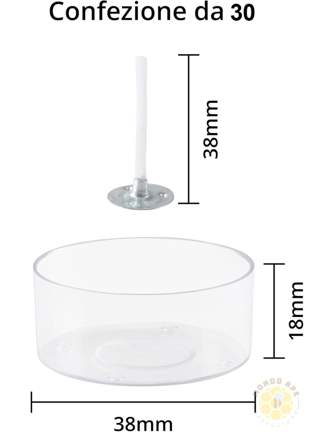 Set da 30 contenitori tealight in plastica trasparente con stoppini, ideali per creare candele fai da te.