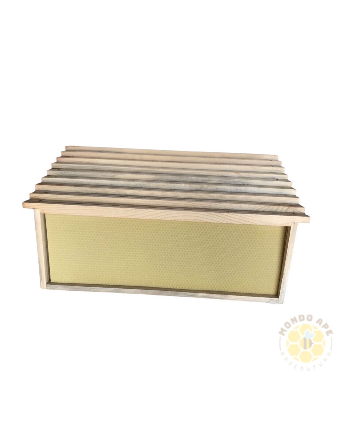 Set composto da 9 telaini da melario, già assemblati e completi di foglio cereo in pura cera d'api italiana.
