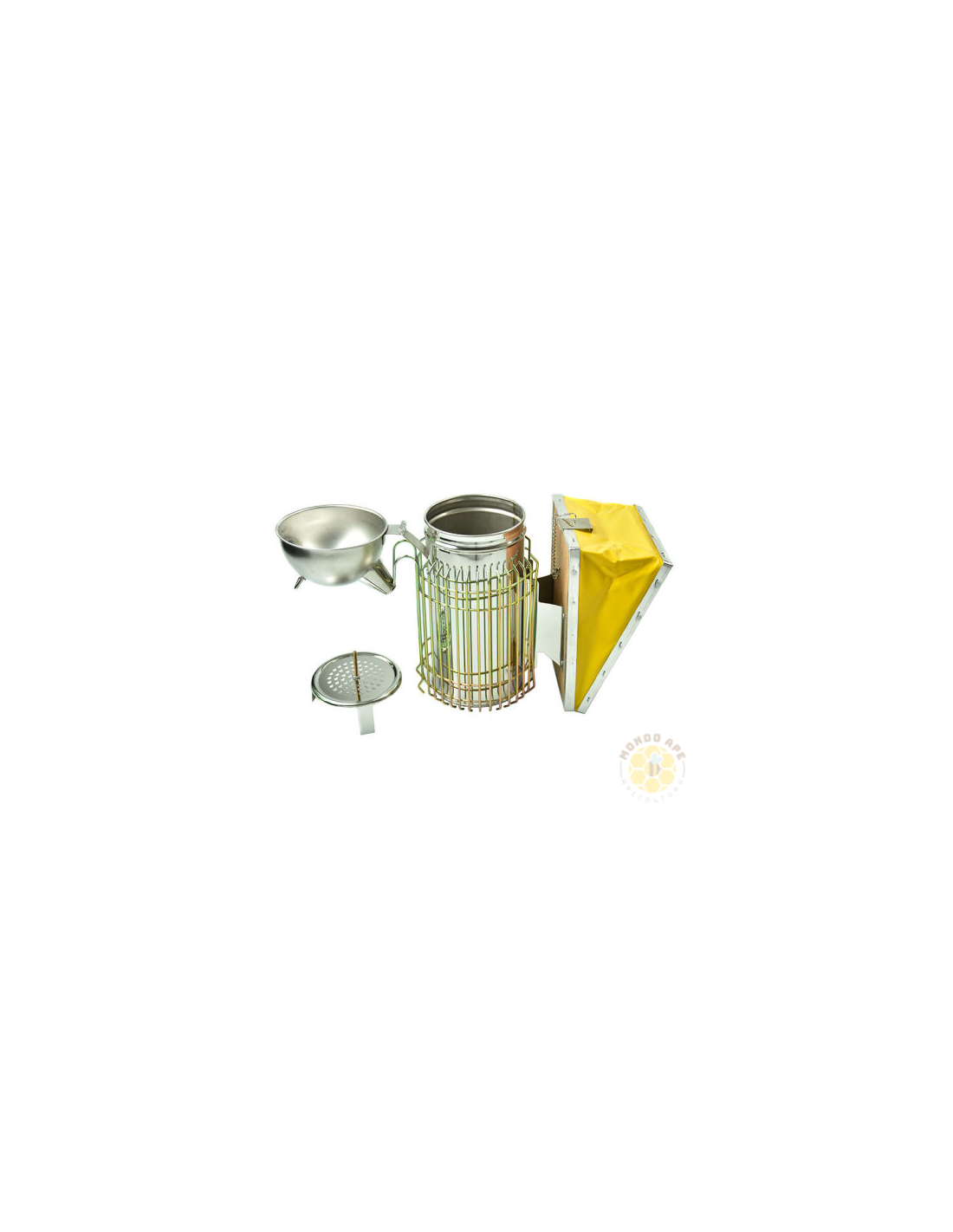 L'Affumicatore in acciaio inox con protezione Ø 10 cm è uno strumento essenziale per l'apicoltura, progettato per calmare le api durante le ispezioni degli alveari.?